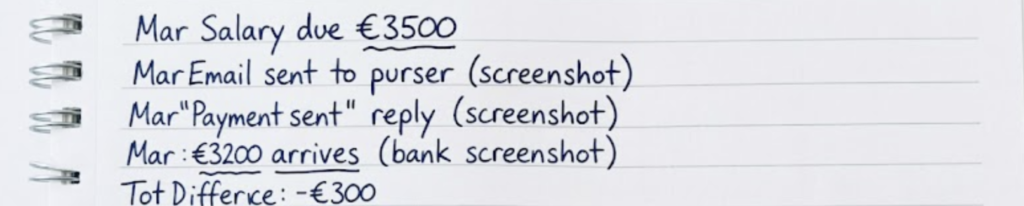 - Different amounts each month – unclear salary structure.